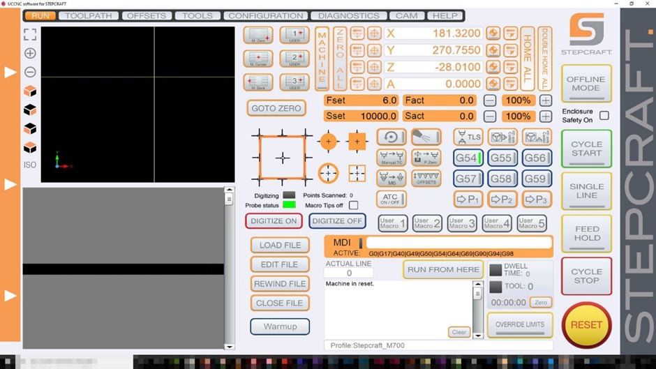 Stepcrafts UCCNC is our main software for driving our Stepcraft D420 Router. Using this software we can take g-code generated in Fusion 360 or vectric cut2d and drive our router to produce accurate parts from a wide range of materials.