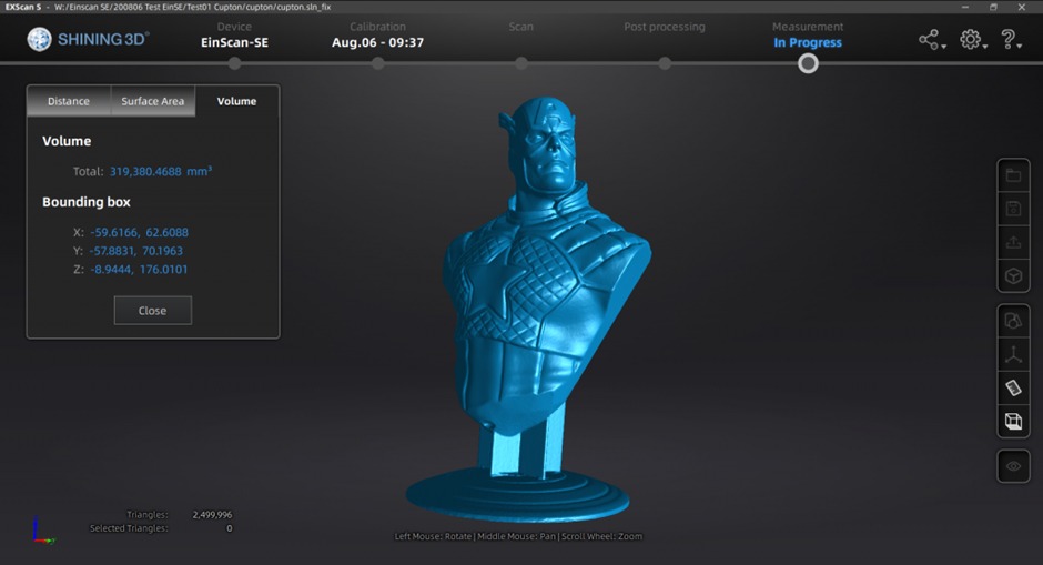 Outputs standard file formats includes STL, OBJ, PLY, ASC, 3MF and P3 (global markers file).